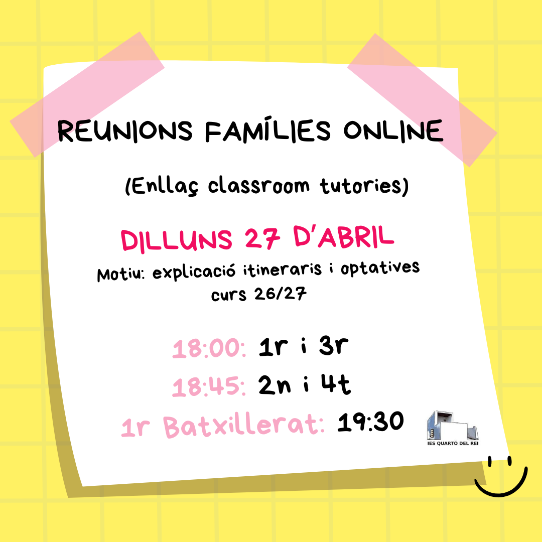 L’IES Quartó del Rei està adherit al programa PROA+, Programa per a l’orientació, avanç i enriquiment educatiu, cofinançat per la Unió Europea. Un dels objectius d’aquest programa és dur a terme accions dirigides a la incorporació de les famílies en la dinàmica escolar.